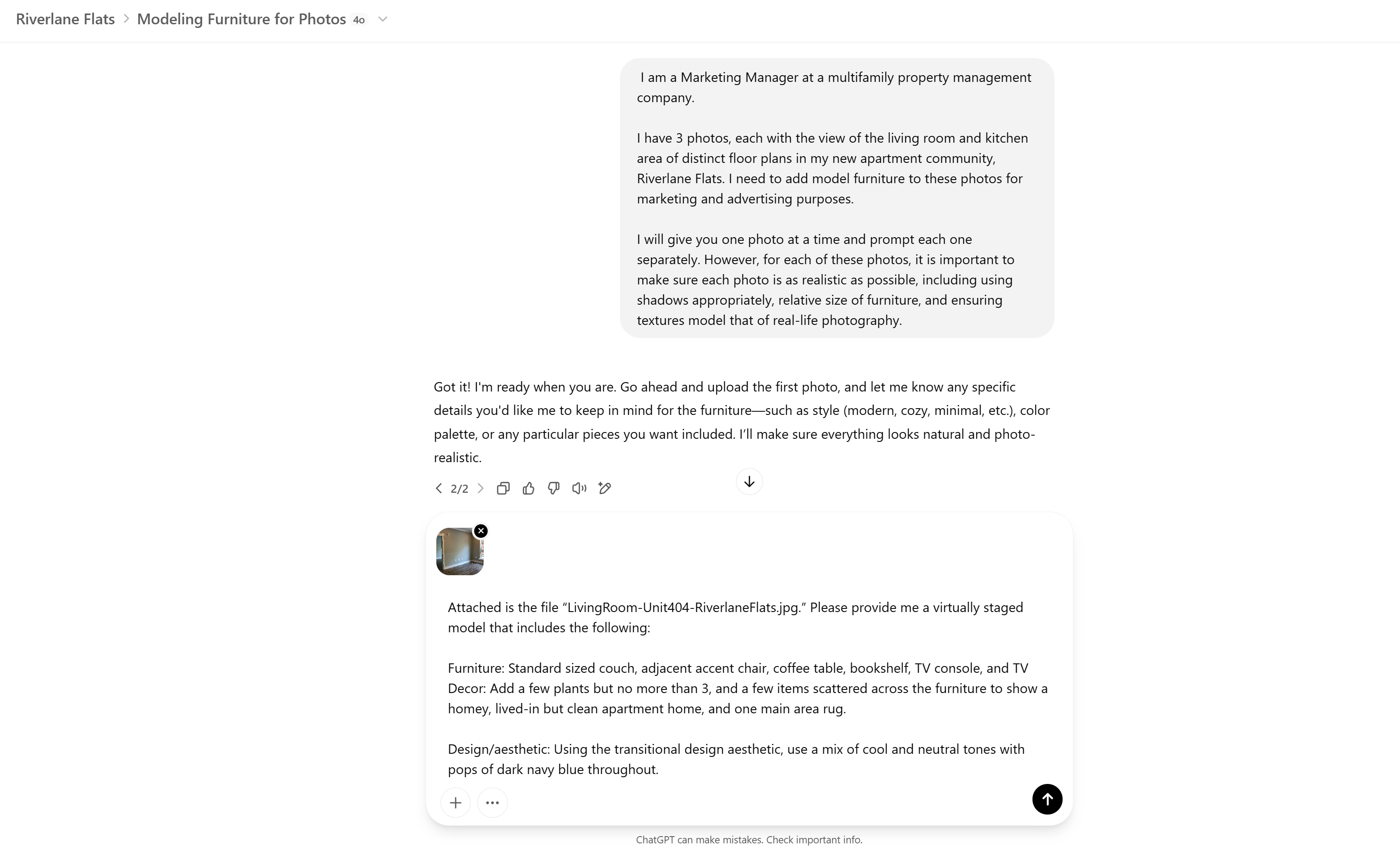 Apartment Photo Virtual Staging Prompt Guide for ChatGPT 4o